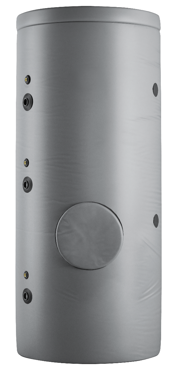 Bollitore alta capacità verticale senza serpentini per installazione a pavimento. Isolamento smontabile.