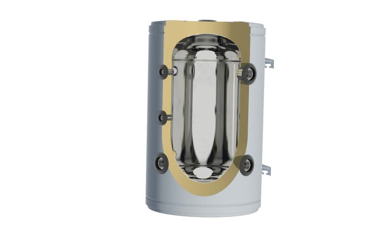 Puffer per pompe di calore per impianti caldo/freddo. Accumulo inerziale e separatore idraulico.