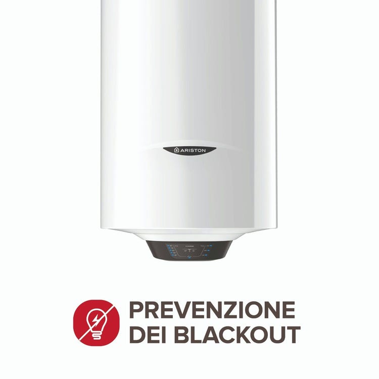 Lo scaldabagno elettrico Ariston PRO1 Powerflex in classe B* utilizza la nuova tecnologia anti-blackout, attraverso la quale lo scaldacqua dialoga con il contatore elettrico modulando autonomamente la potenza in base al carico della rete domestica per massimizzare le performance e minimizzare il rischio di blackout.